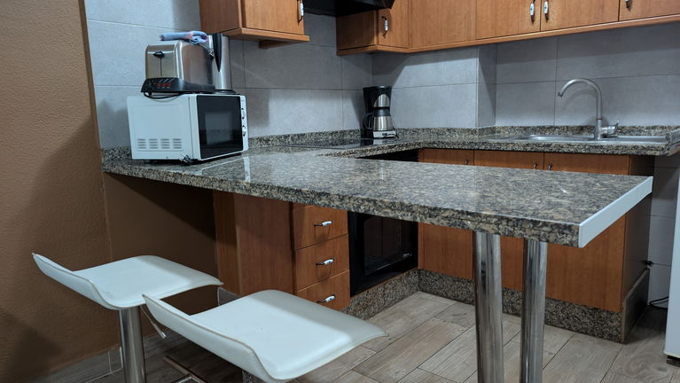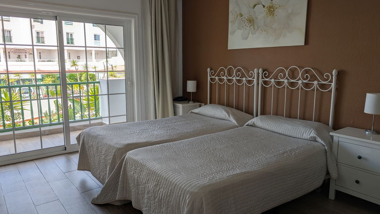 Disfruta de la independencia de tu propio Apartamento Superior con balcón o terraza privada. Cuenta con un dormitorio con dos camas individuales, salón con sofá cama, baño privado con ducha y una cocina completa. El alojamiento ideal para una estancia confortable y relajante en el Sur de Tenerife.